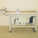 MODEL 22 STYLE M.A. 10″ CONVEYOR FOR USE ON A MODEL 2200 10″ PRESS, WITH UPGRADEED HIGH SPEED UPPER BELT DRIVE ASM, 5′ CONVEYOR BED, BATCH COUNTER, AND HEAVY DUTY ADJUSTABLE ROLL AWAY CART