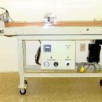 MODEL 22 STYLE M.A. 20″ CONVEYOR FOR USE ON A MODEL 4150 20″ PRESS, WITH UPGRADEED HIGH SPEED UPPER BELT DRIVE ASM, 5′ CONVEYOR BED, BATCH COUNTER, AND HEAVY DUTY ADJUSTABLE ROLL AWAY CART